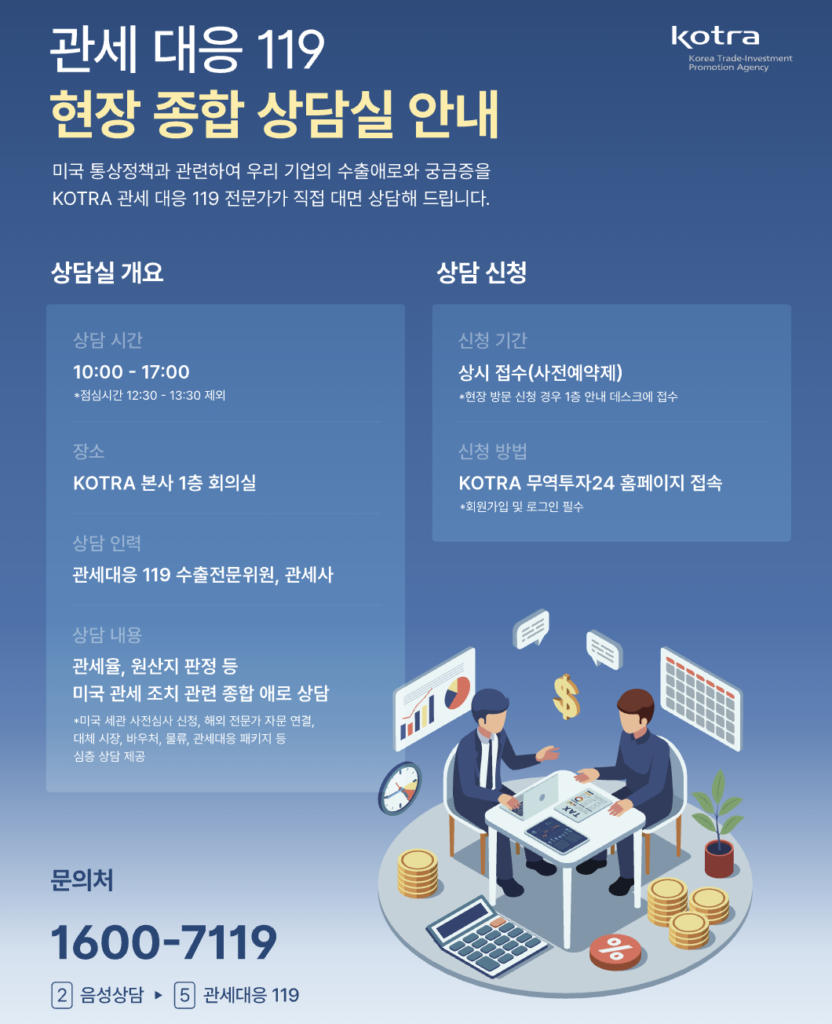 관세 대응 119 현장 종합 상담 신청 바로가기 | 미국 통상 정책·KOTRA 무역투자 24