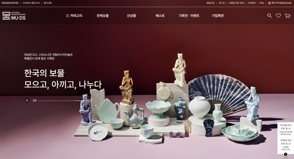 국내 대표 문화공간인 국립중앙박물관의 공식 뮤지엄샵 MU:DS(뮷즈)에서는 전통 유물을 현대적으로 재해석한 다양한 문화상품을 온라인으로 구매하실 수 있습니다. 전시 연계 굿즈, 베스트셀러 상품, 실용적인 선물 아이템까지 공식 온라인몰에서 간편하게 확인 가능합니다.