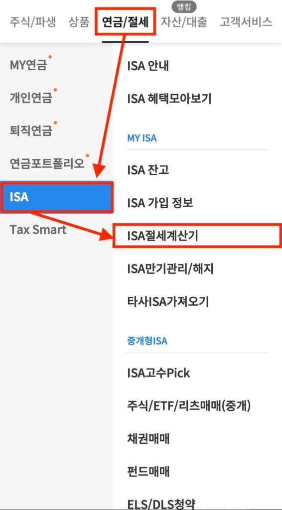 • 삼성증권 mPOP 앱: 연금/절세 → ISA → ISA절세계산기