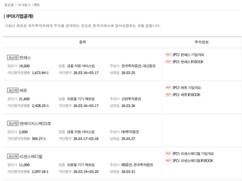 IPO(기업공개)는 기업이 처음으로 증시에 상장되는 과정으로, 초기 수급과 변동성이 크기 때문에 투자 기회를 빠르게 포착할 수 있는 영역입니다. 네이버 증권 IPO 페이지에서는 코스피·코스닥 신규상장 종목, 공모가, 청약 일정, 주관사 정보를 실시간으로 확인할 수 있어 공모주 투자와 상장 직후 흐름 분석에 매우 유용합니다. IPO를 꾸준히 확인하시면 시장의 신규 자금 유입 방향과 다음 투자 테마를 선제적으로 파악하실 수 있습니다.