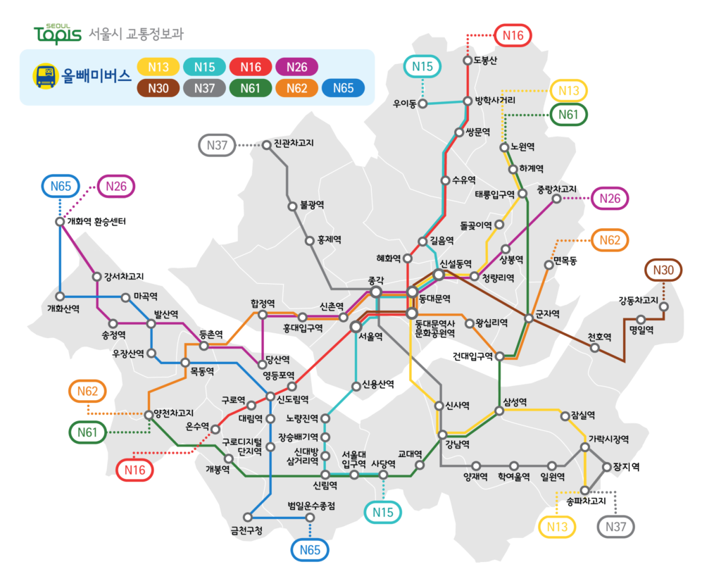 - 올빼미 버스 노선도를 활용해 이동 경로 사전 확인