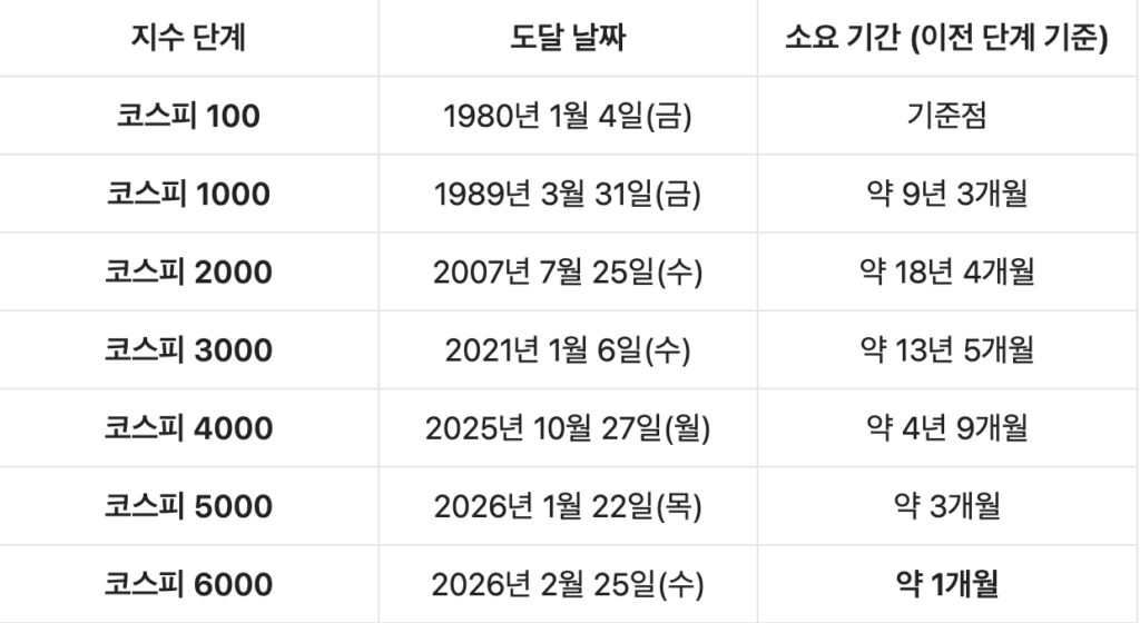 한국 증시를 상징하는 코스피 지수는 1980년 1월 4일 100으로 시작한 이후, 한국 경제의 성장과 기업 실적을 그대로 반영하며 꾸준히 상승해 왔습니다. 각 주요 지수 돌파 시점은 단순한 숫자의 변화가 아니라, 한국 증시의 역사적 전환점이자 투자자에게는 장기 투자 전략과 시장 흐름을 읽는 중요한 기준점으로 의미가 있습니다.