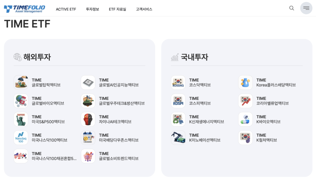 타임폴리오자산운용 TIME ETF 홈페이지 바로가기 | ETF 종류·수수료·분배금 한눈에 보기