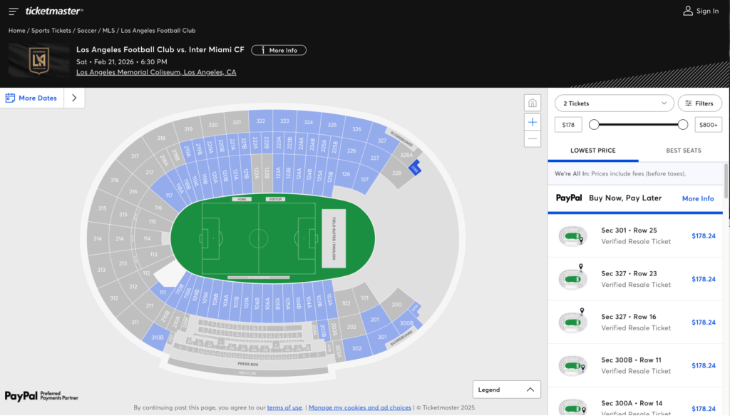 2026 LAFC vs 인터마이애미 경기 티켓 구매 바로가기(Ticketmaster 공식 링크 포함)