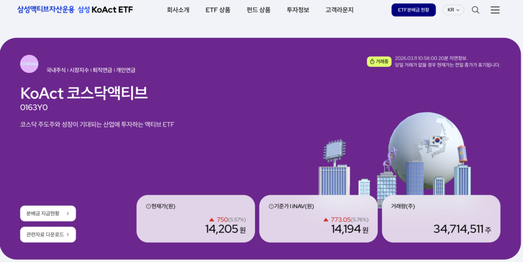 KoAct 코스닥액티브 ETF(0163Y0) 상품 정보 바로가기 | 코스닥 주도주·신성장 산업 집중 투자 전략