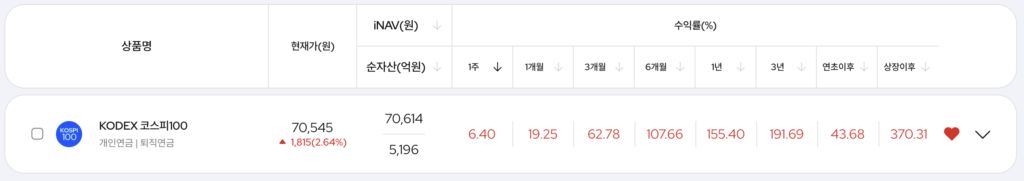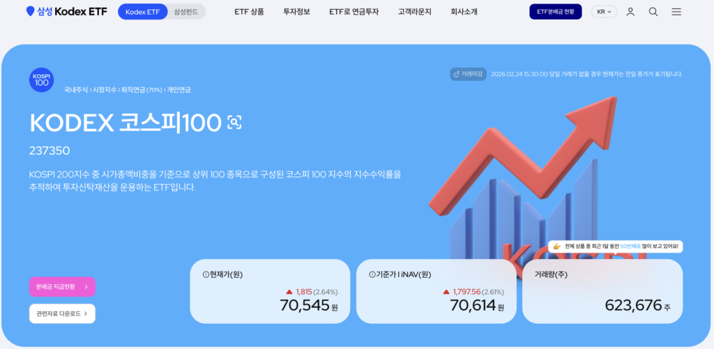 KODEX 코스피100 ETF(237350) 상품 정보 바로가기 | KOSPI 200지수 중 상위 100 종목·구성종목·수익률·분배금·총보수 총정리