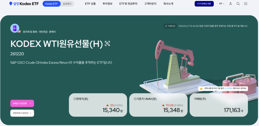 KODEX WTI원유선물(H) ETF(261220) 상품 정보 바로가기 | 원유선물 구조·환헤지·수익률 핵심 분석