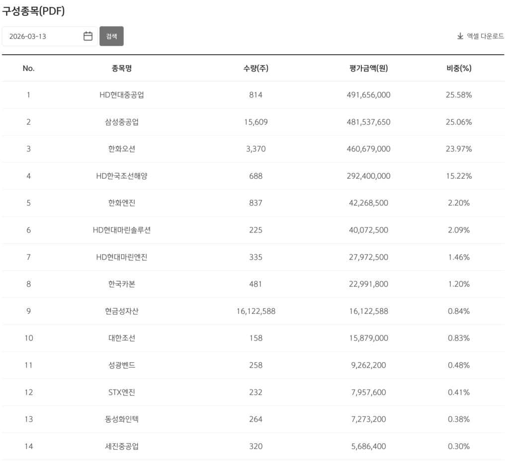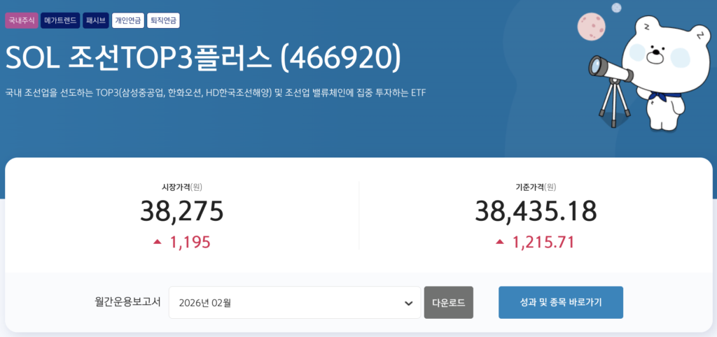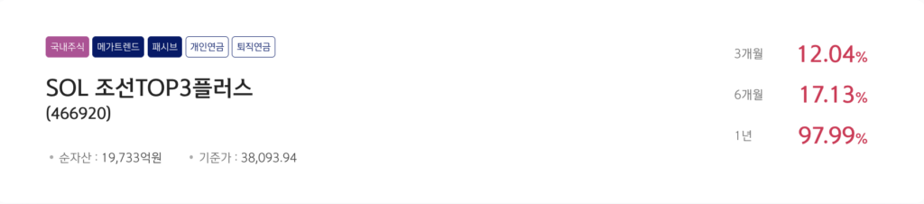 SOL 조선TOP3플러스 ETF(46692) 상품 정보 바로가기 | 구성종목·수익률·분배금·총보수