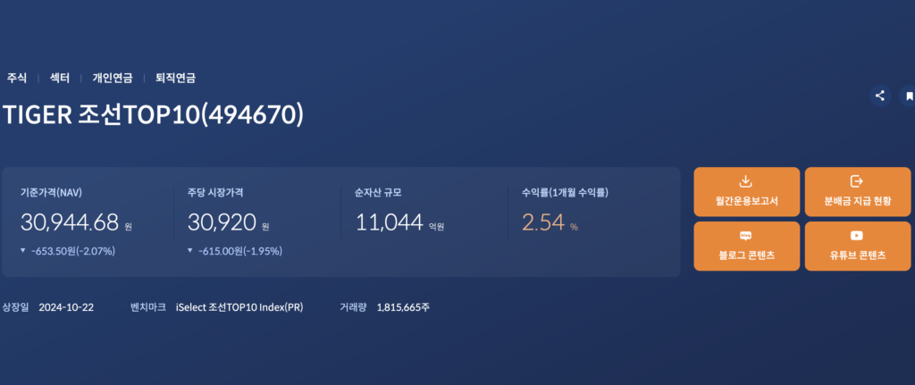 TIGER 조선TOP10 ETF(494670) 상품 정보 바로가기 | 국내 조선업 TOP10 집중·구성종목·수익률·분배금·총보수 총정리