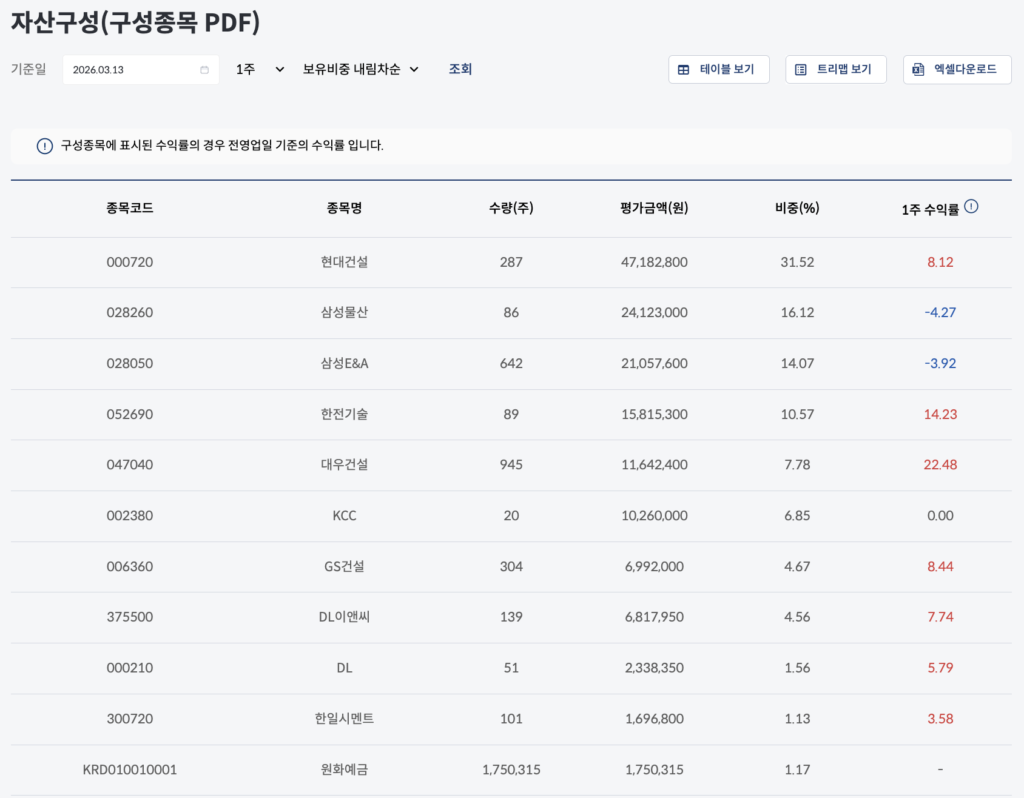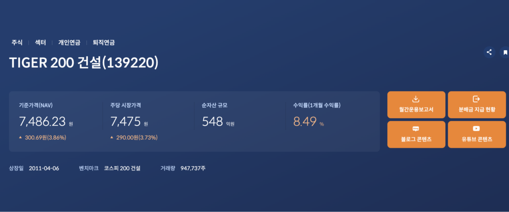 TIGER 200 건설 ETF(139220) 상품 정보 바로가기 | 수익률·구성종목·분배금·총보수 총정리 2026년 03월 14일 작성자: BOSTON ATLAS TIGER 200 건설 ETF(139220)은 코스피200 건설 지수를 추종하는 국내 건설 섹터 ETF입니다. 현대건설, 삼성물산, 삼성E&A 등 주요 건설주에 분산 투자하며 국내 건설 경기와 해외 플랜트·인프라 수주 흐름을 반영합니다. 총보수는 연 0.40%로, 건설 산업 전반에 간접 투자하실 수 있는 상품입니다. TIGER 200 건설 ETF(139220) 상품 정보 바로가기 페이스북 밴드 카카오톡 네이버 라인 X 링크 복사 [유리알코팅밤] 라네즈 립 글로이 밤 10g (6종) | 올리브영 대한민국 NO.1 헬스&뷰티 스토어 OLIVEYOUNG 라네즈 립 슬리핑 마스크 EX 20g 쇼트케이크 | 올리브영 대한민국 NO.1 헬스&뷰티 스토어 OLIVEYOUNG [한정기획] 라네즈 립 슬리핑 마스크 20g 7종(단품/기획) | 올리브영 대한민국 NO.1 헬스&뷰티 스토어 OLIVEYOUNG [단독기획/화잘먹] 조선미녀 맑은쌀 선크림 50ml 2입 기획 | 올리브영 대한민국 NO.1 헬스&뷰티 스토어 OLIVEYOUNG [피부톤업] 조선미녀 쌀겨수맑은세럼 30ml | 올리브영 대한민국 NO.1 헬스&뷰티 스토어 OLIVEYOUNG 조선미녀 붉은팥 PDRN 모공탄력 세럼 30ml | 올리브영 대한민국 NO.1 헬스&뷰티 스토어 OLIVEYOUNG 이 포스팅은 올리브영 쇼핑 큐레이터 활동의 일환으로, 구매 시 일정 금액의 수수료를 제공받습니다. 클릭 후 파트너스 활동을 통해 일정액의 수수료를 받습니다. 이 게시물이 얼마나 유용했습니까? 평점을 매겨주세요. 평점 제출하기 평균 평점 5 / 5. 투표 수 13 지금까지 투표한 사람이 없습니다. 가장 먼저 게시물을 평가해 보세요.